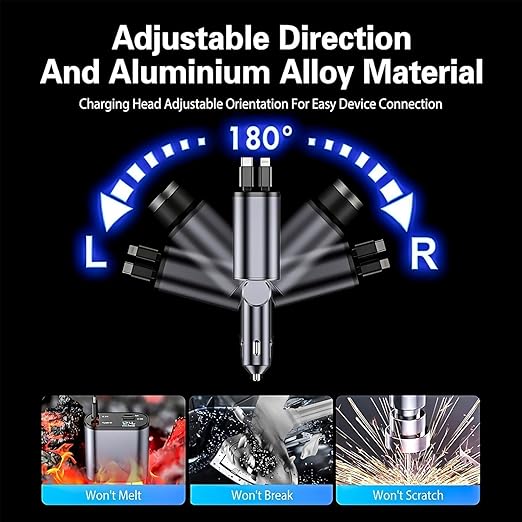 Enjoy tangle-free charging with 7 adjustable length gears and an automatic rewind feature. The newly improved rotating charging head allows flexible angles for hassle-free use in any seat.